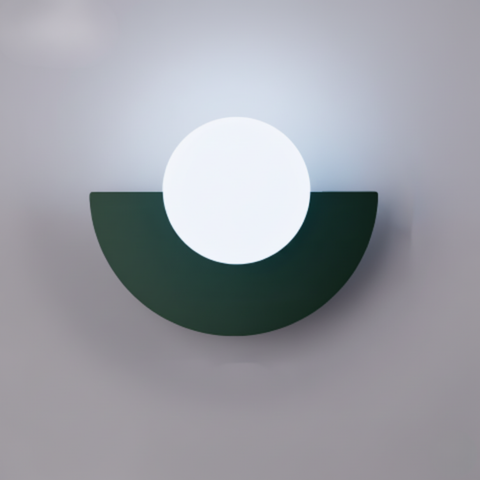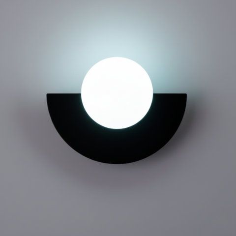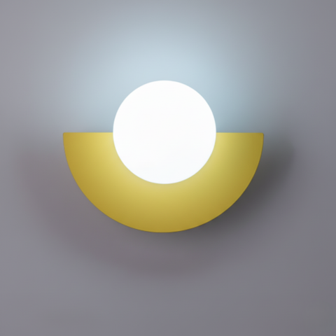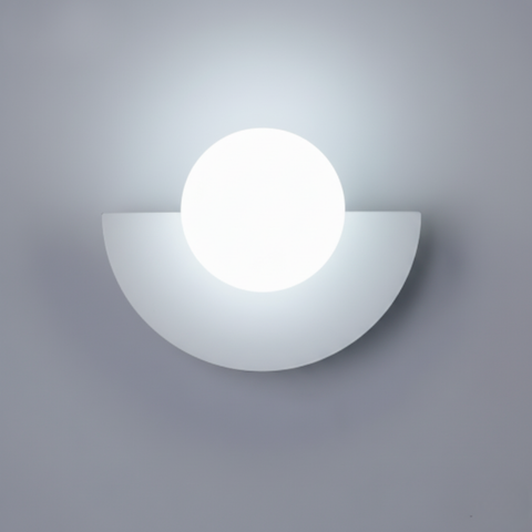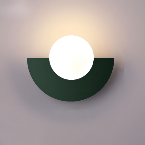 This wall light adds a graphic touch to your walls thanks to its semicircular design and central luminous sphere. It emits a soft and even light, perfect for creating a calming atmosphere in the living room, bedroom, or hallway. Available in several colors, it easily fits into any interior style.
